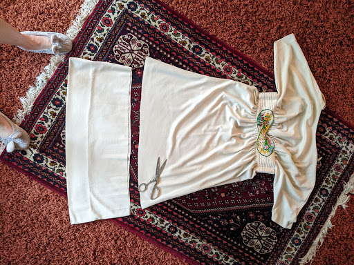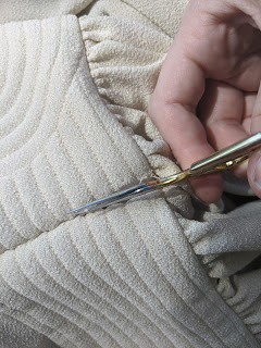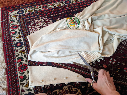 Luckily, I noticed that someone had taken this dress in a bit! I’ve had this dress for months and never noticed that it had some sneakily hidden darts, which I undid with my embroidery scissors.