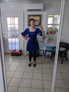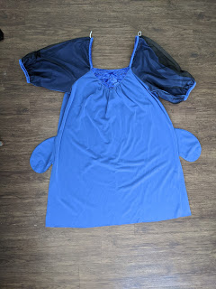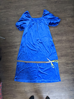 Julian helped me lay the fitted dress as a guide on top of the blue one