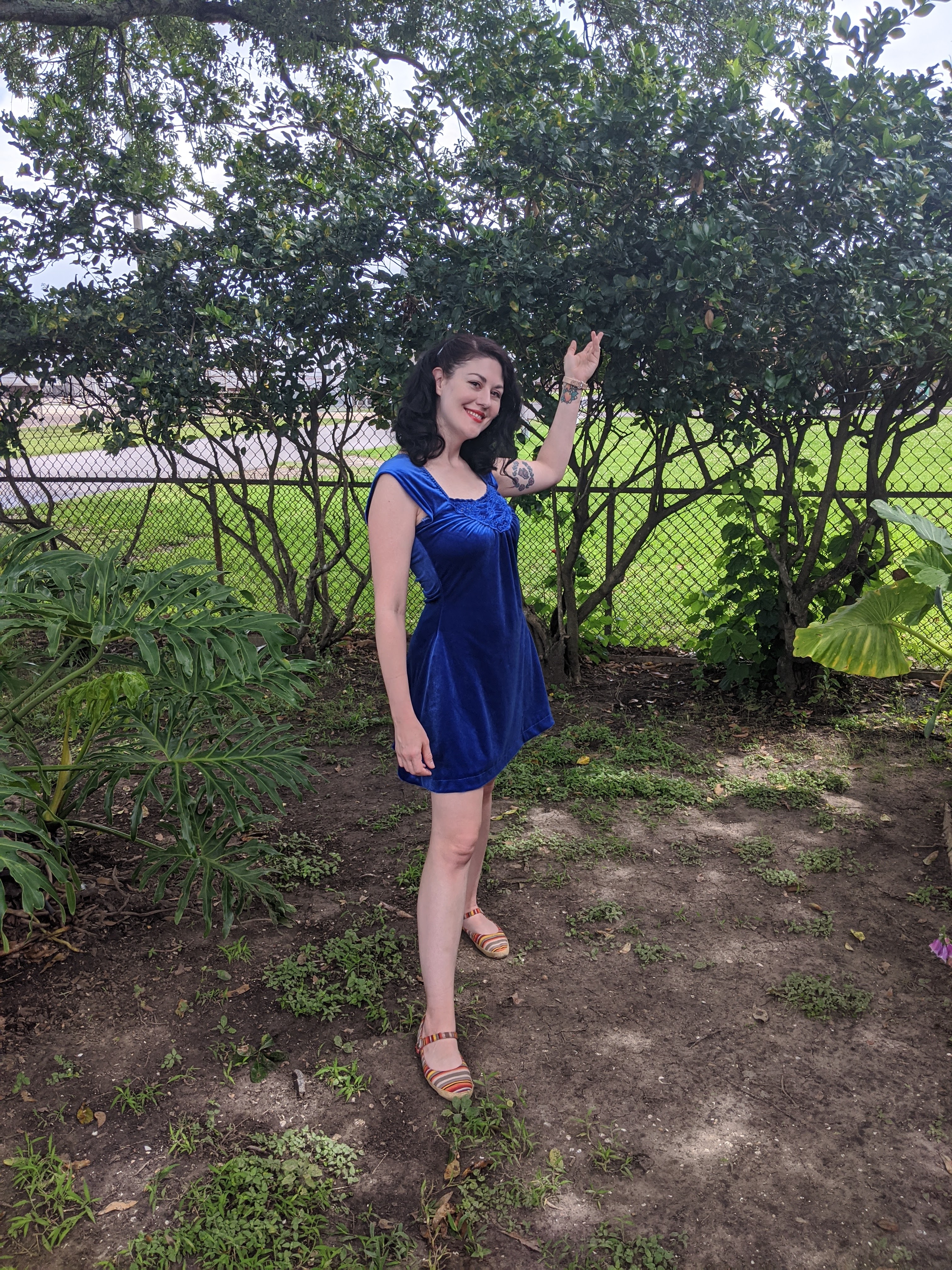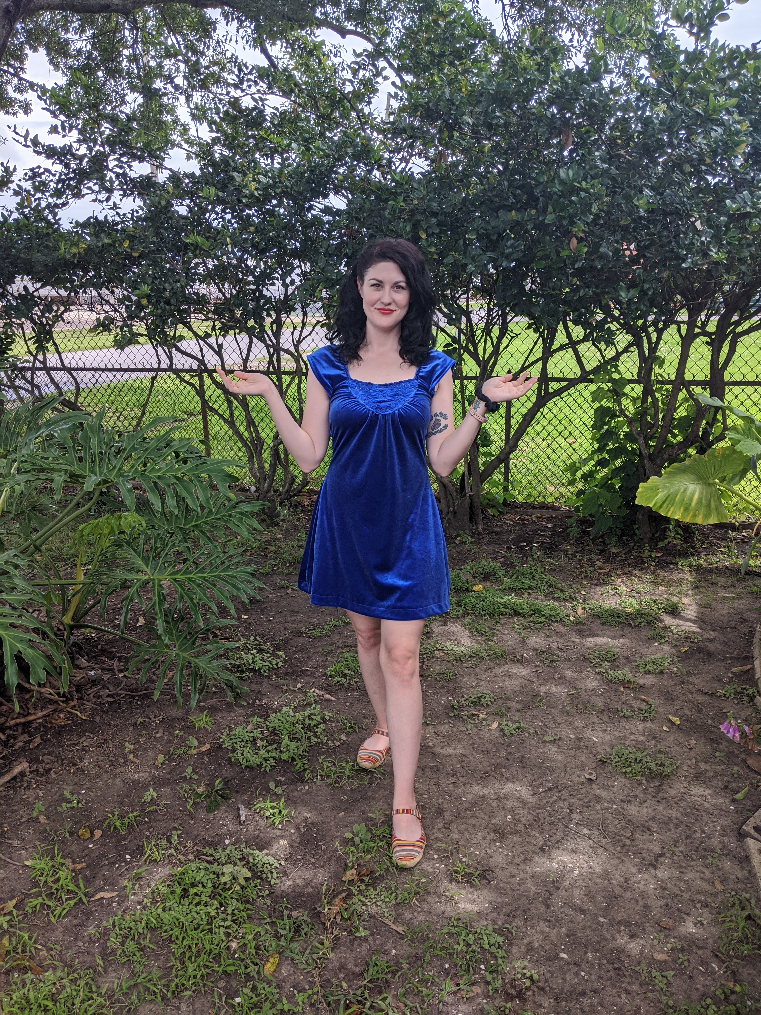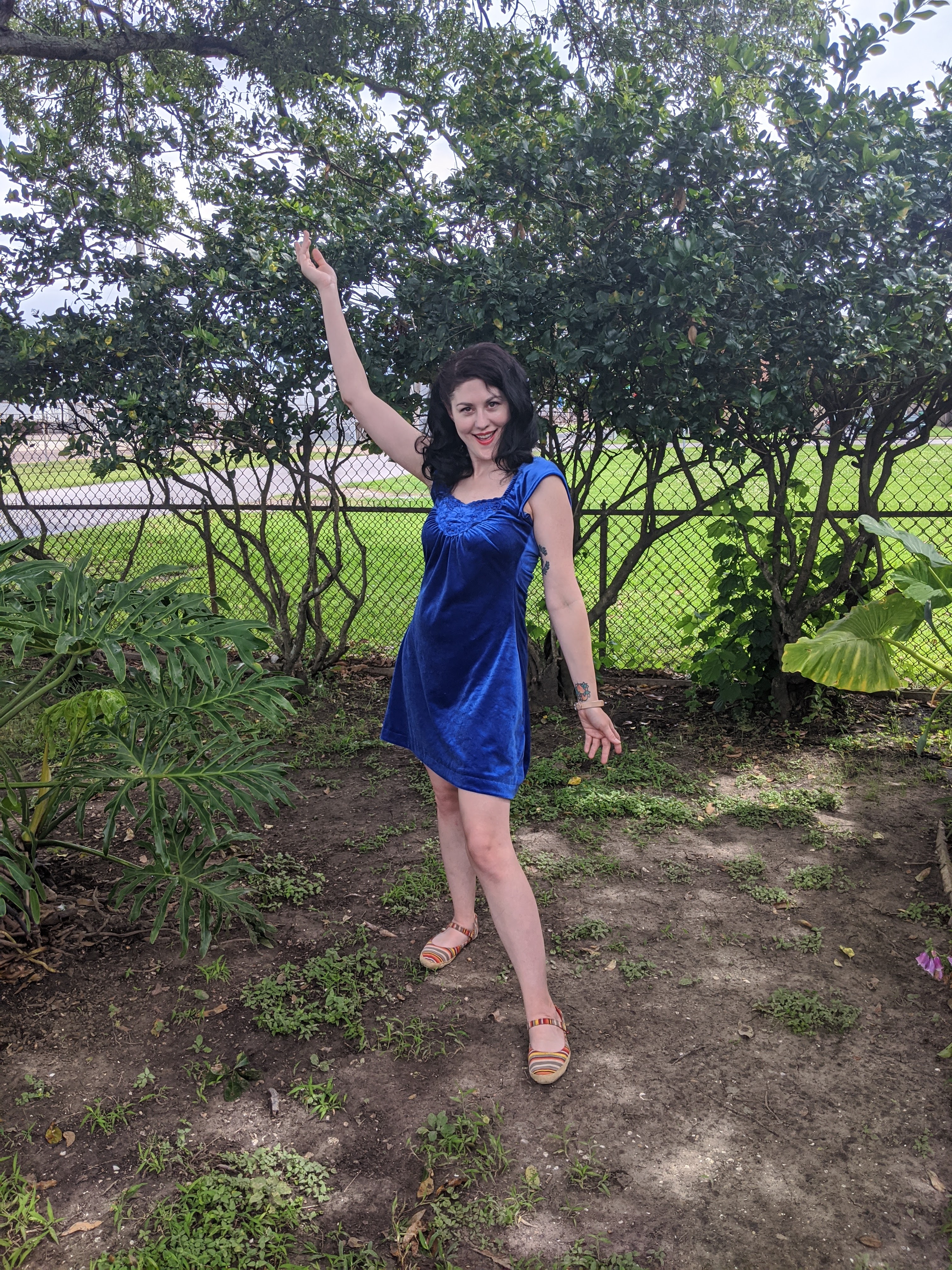 I only wore this dress to the yard because I didn’t want to wear blue to the Black Lives Matter protest in New Orleans, for obvious reasons. If this dress weren’t polyester, I would have dyed it a plum color. I changed right out of it and went down town to the march, because I feel very strongly that if white people are the problem, white people are the answer, and that means I need to step up and do better for the black community. So! Support black artists, authors, podcasters, politicians, business owners, and laws/policies that create a more just world for them. This is not a political issue, it’s a human rights issue, and that’s all of our problem. I submit this poem by Martin Niemoller to illustrate that point: