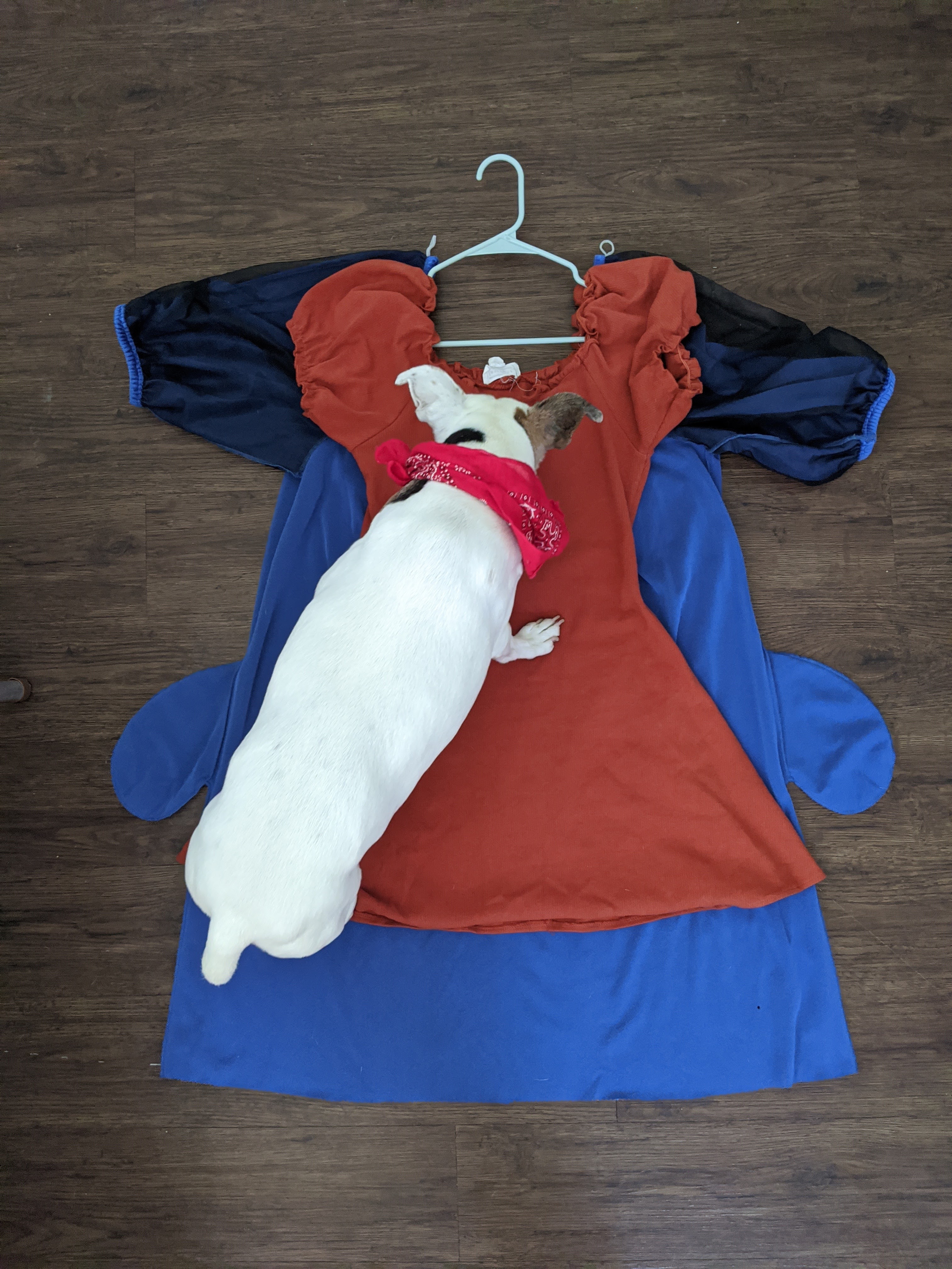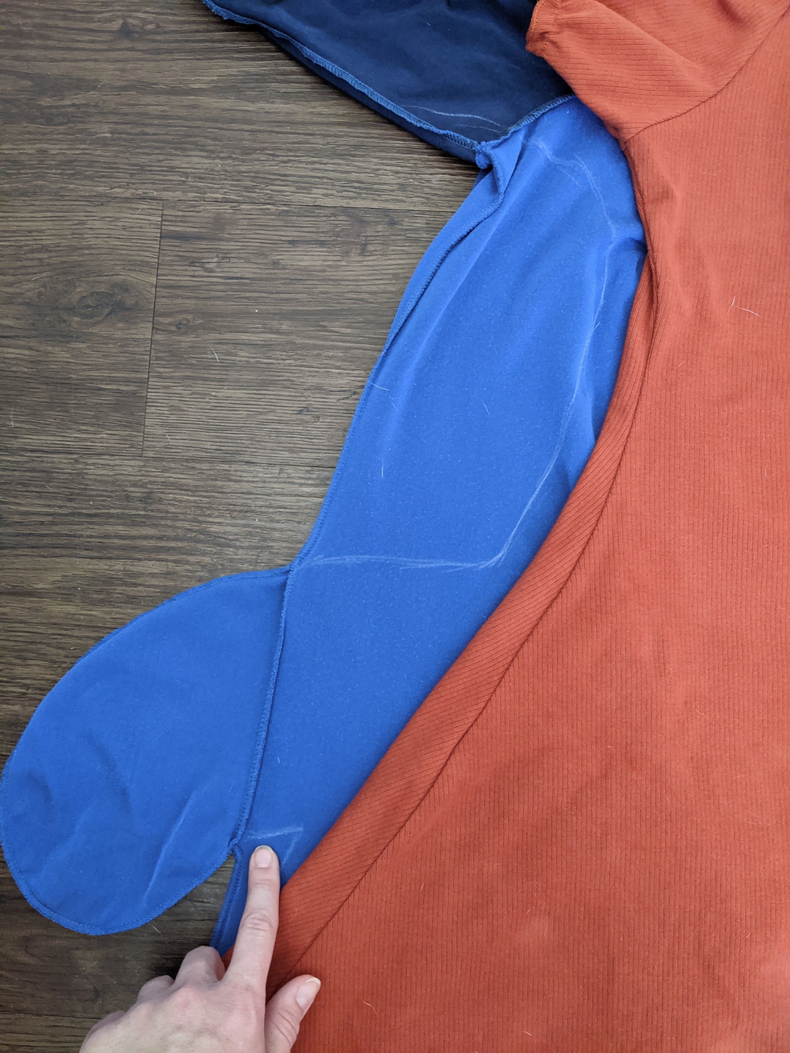 Julian helped me lay the fitted dress as a guide on top of the blue one