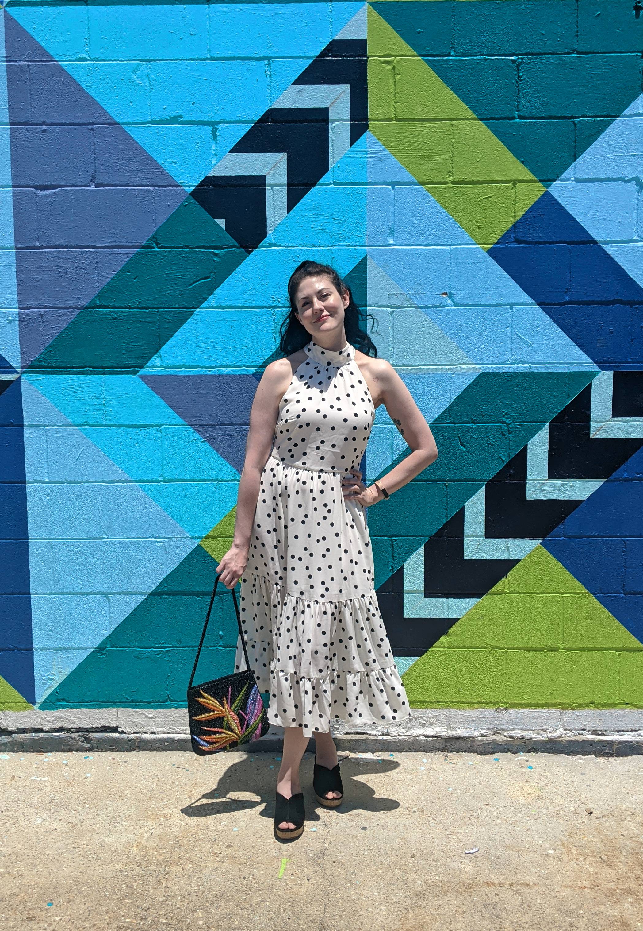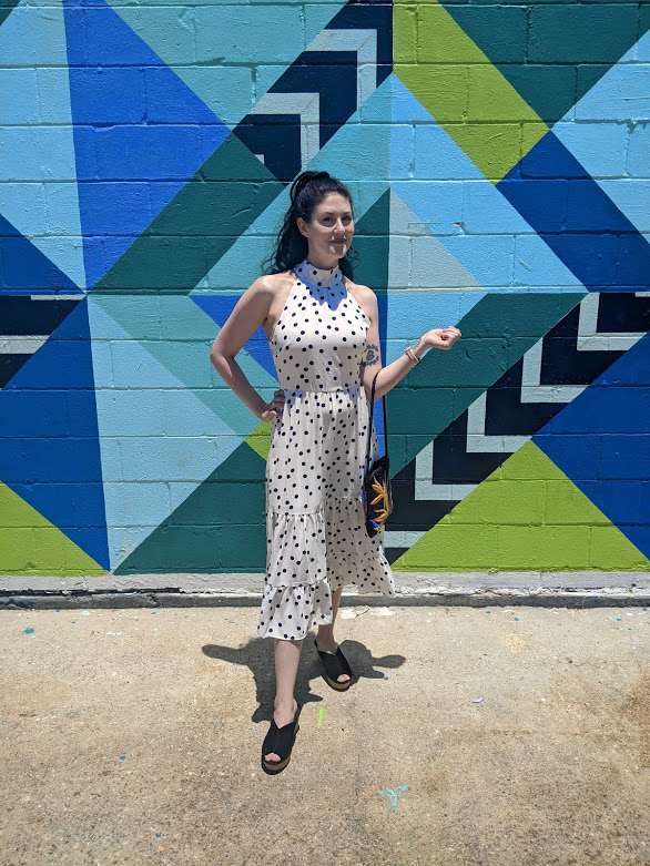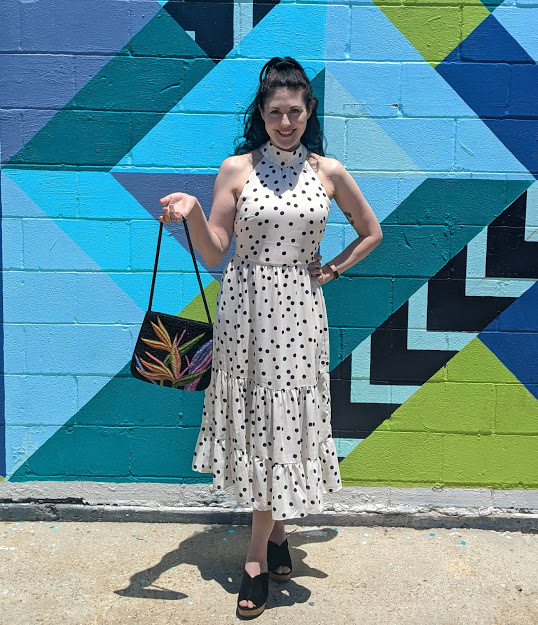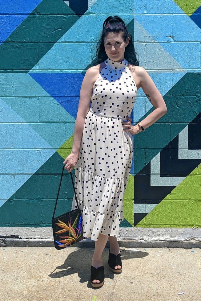 The last dress is a Holy Grail-level find. I saw it at Goodwill and did not even try it on, just immediately paid for it because I knew it would be amazing and I needed ownership ASAP. This polka dot halter dress is me all over. I wore it with my beaded purse, also from Goodwill, and some wedges bought at Udelco Vintage in Hawthorn, New Jersey. It’s a giant warehouse of giant cardboard boxes and you need to DIG. It’s an adventure, so if you’re in there area, check it out: http://www.udelcoinc.com/
