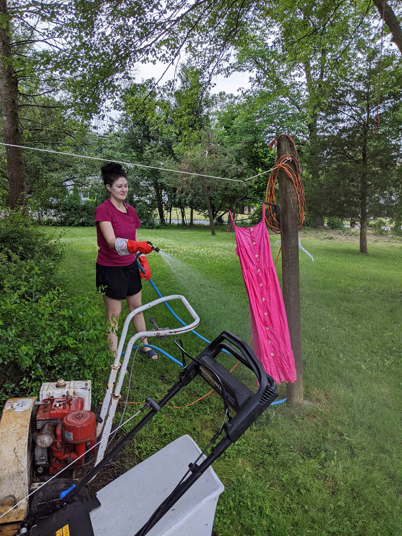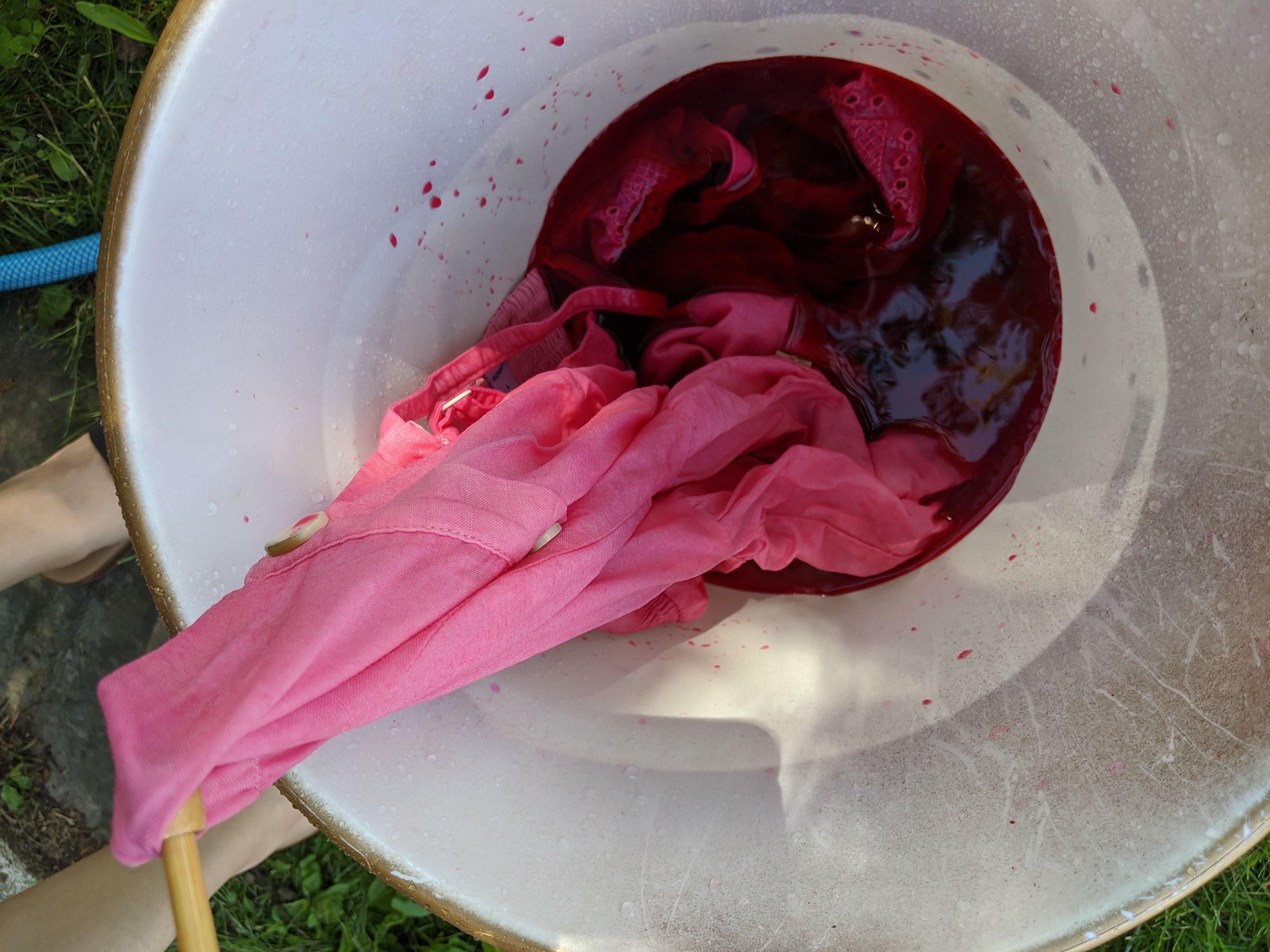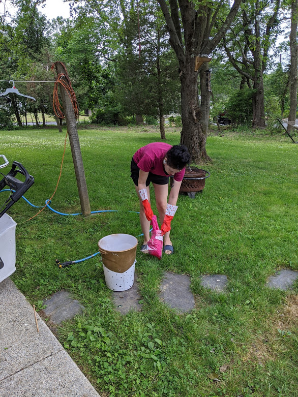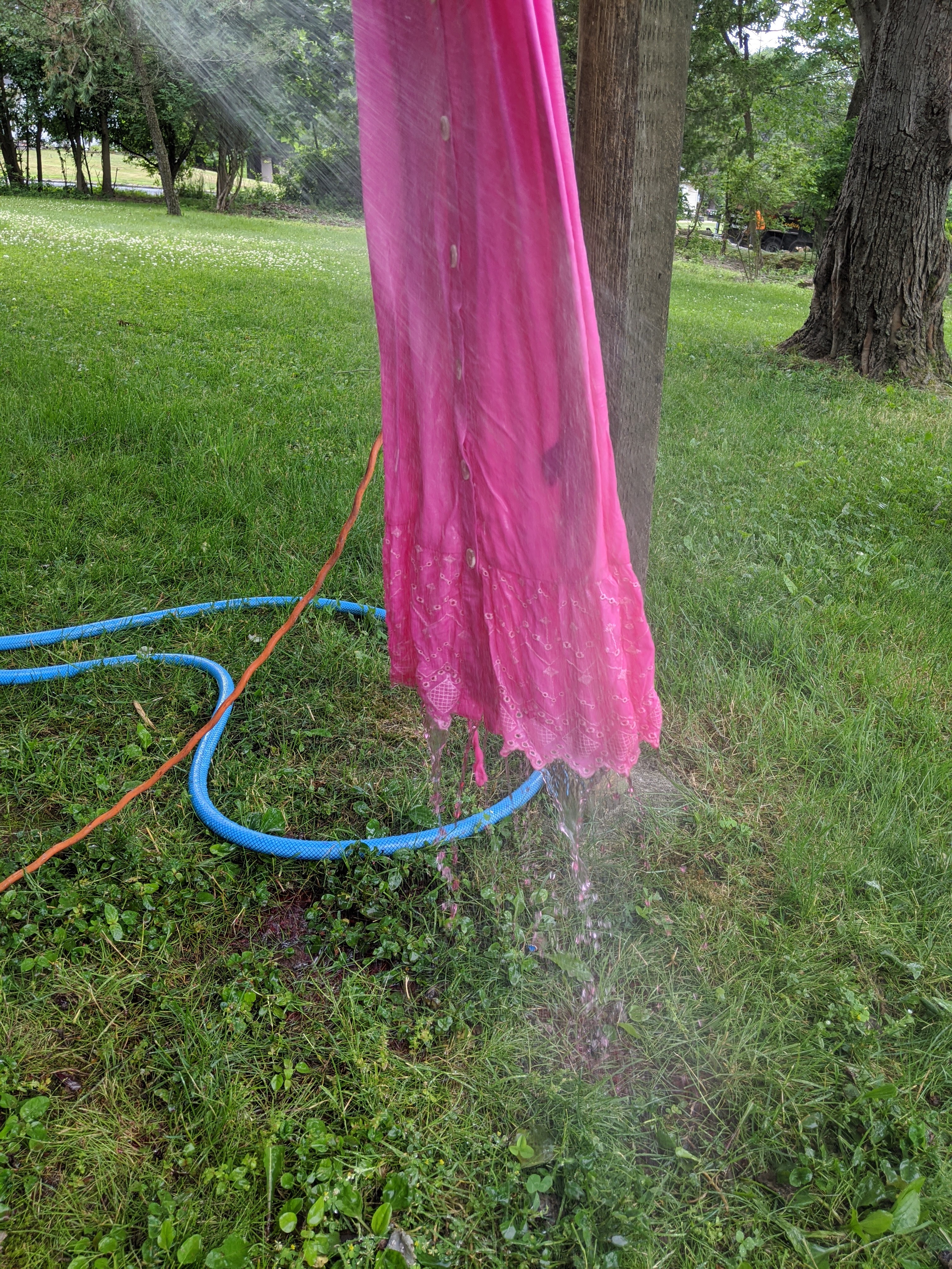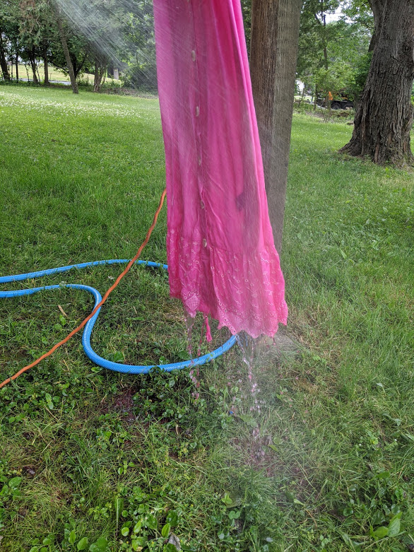 Then, like a hot pig in the sun, I turned the hose on it. You have to rinse your garment until the water runs clear, much like when you color your hair at home.
