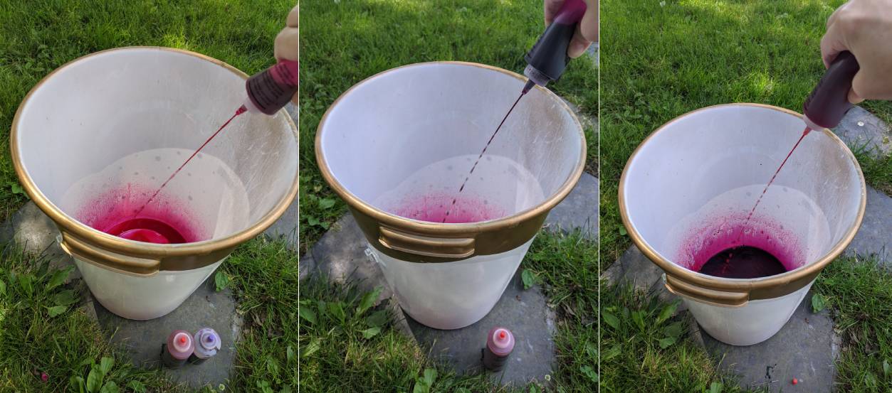 I squirted the pink, red, and purple dyes into my *clean* trash bin.