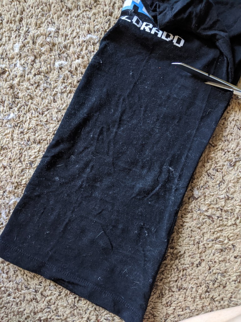 So that’s it! I no longer have this tee shirt stuffed in my pajama drawer, nor is my neck/armpit being scraped raw in the name of safety. Killed two birds with one stone, as some say.