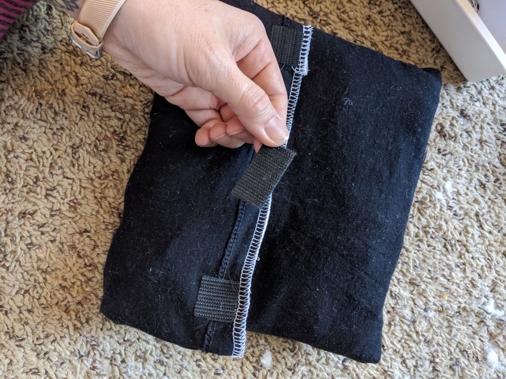 Again, I tacked down the velcro in case it gets oppressively hot in the car. It will be difficult to sew through self-adhesive velcro because the glue will gum up your needle, but if you stick with it (no pun intended), it’ll work!