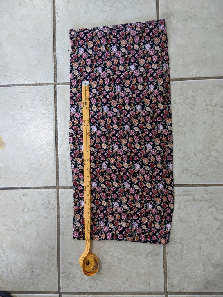 The hem was a quick fix, so next was to make those sleeves! I measured over my shoulder to see how long I needed to make them, and then cut them out. It came out to 17″, but I cut it at 18″ so I would have a 1/2″ seam allowance at both ends to work with.