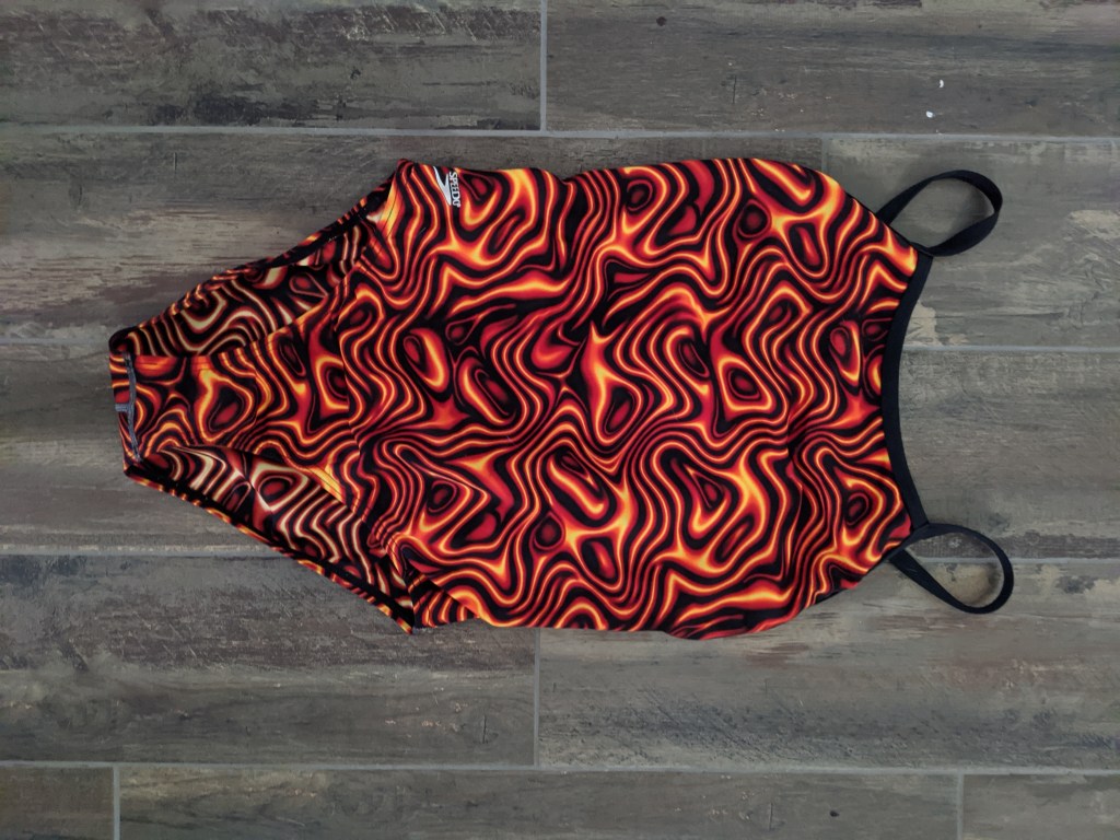 My sister got this 90’s vintage swimsuit at a thrift shop in either Florida or Louisiana, and it fits perfectly. Since she’s only 17, I don’t want to bear her in public on this blog, but here’s kind of what it looks like: