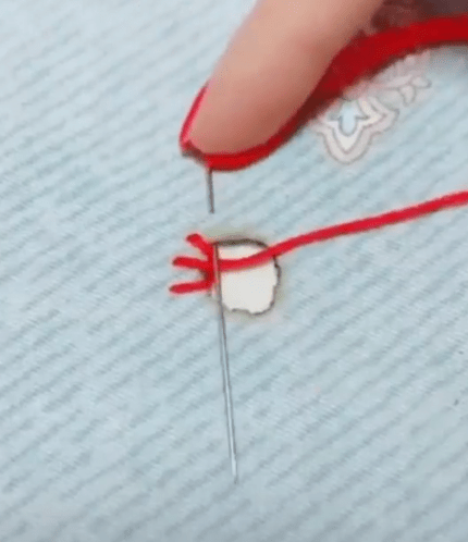 Once you’ve made it to the center of the hole, simply tie a knot and trim your thread tail, and that’s it!