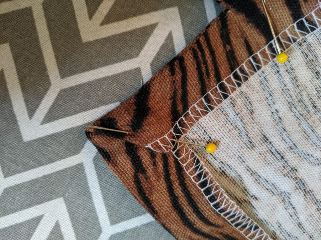 To make sure there wouldn’t be any unravelling from the facing, I serged the edges. Then, you simply lay right sides together and pin.