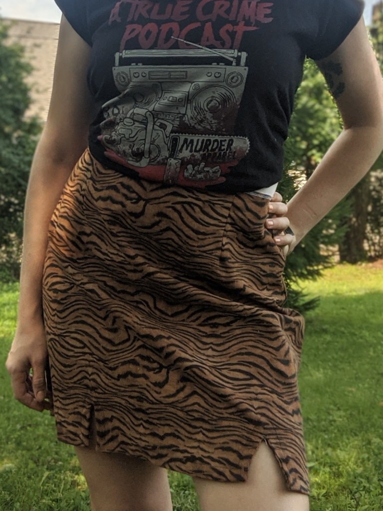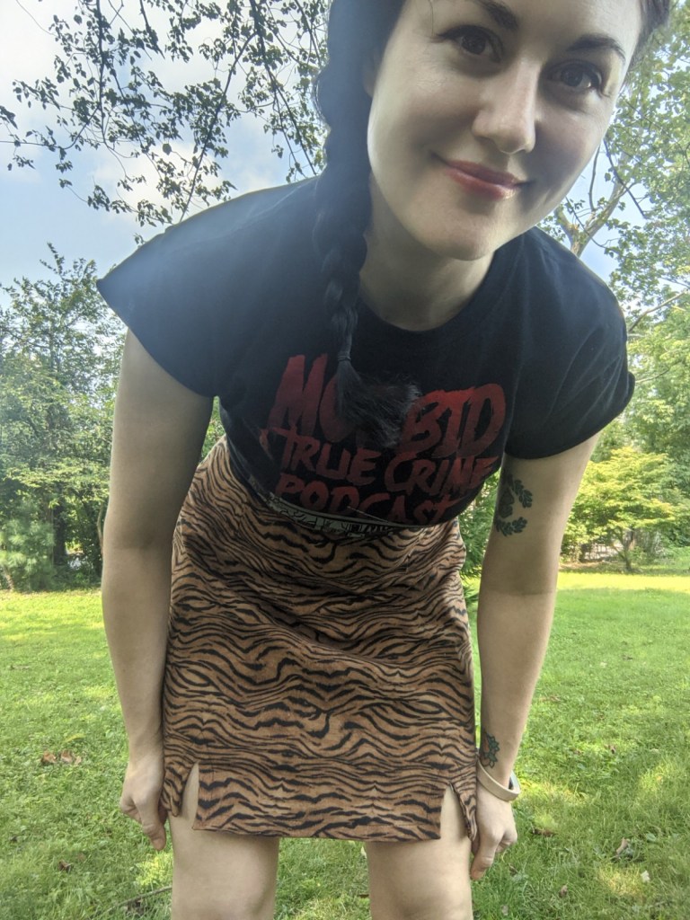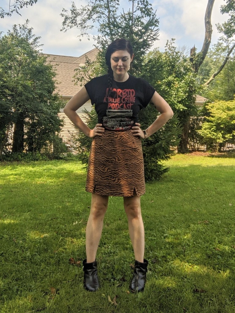 I paired it with a top I got from Murder Apparel that celebrates one of my favorite podcasts, Morbid, and some boots I got at T.J. Maxx about 5 years ago (I keep my shoes nice for the long run).