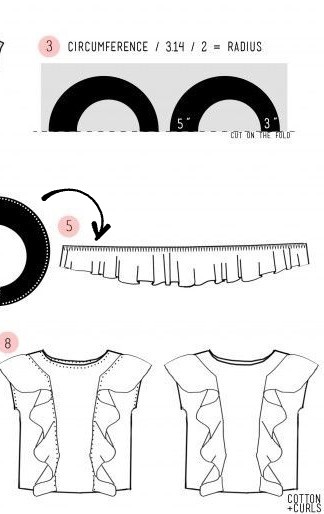 The idea now is to cut out arches from the sleeves, because once they are stretched, they will form a natural ruffle, as illustrated here: