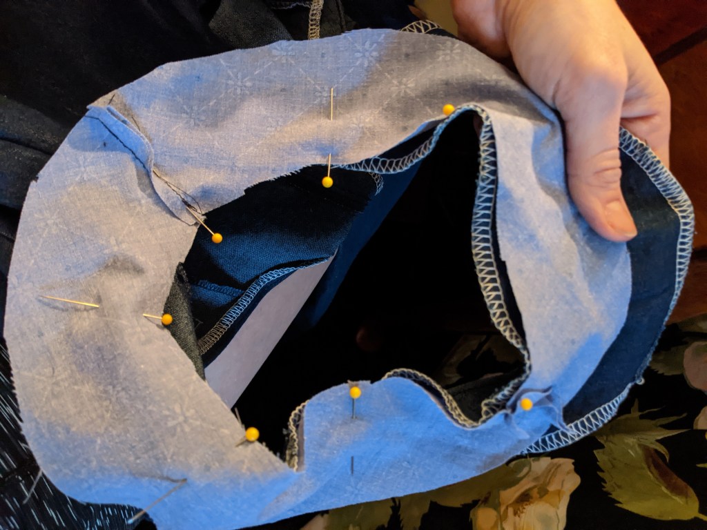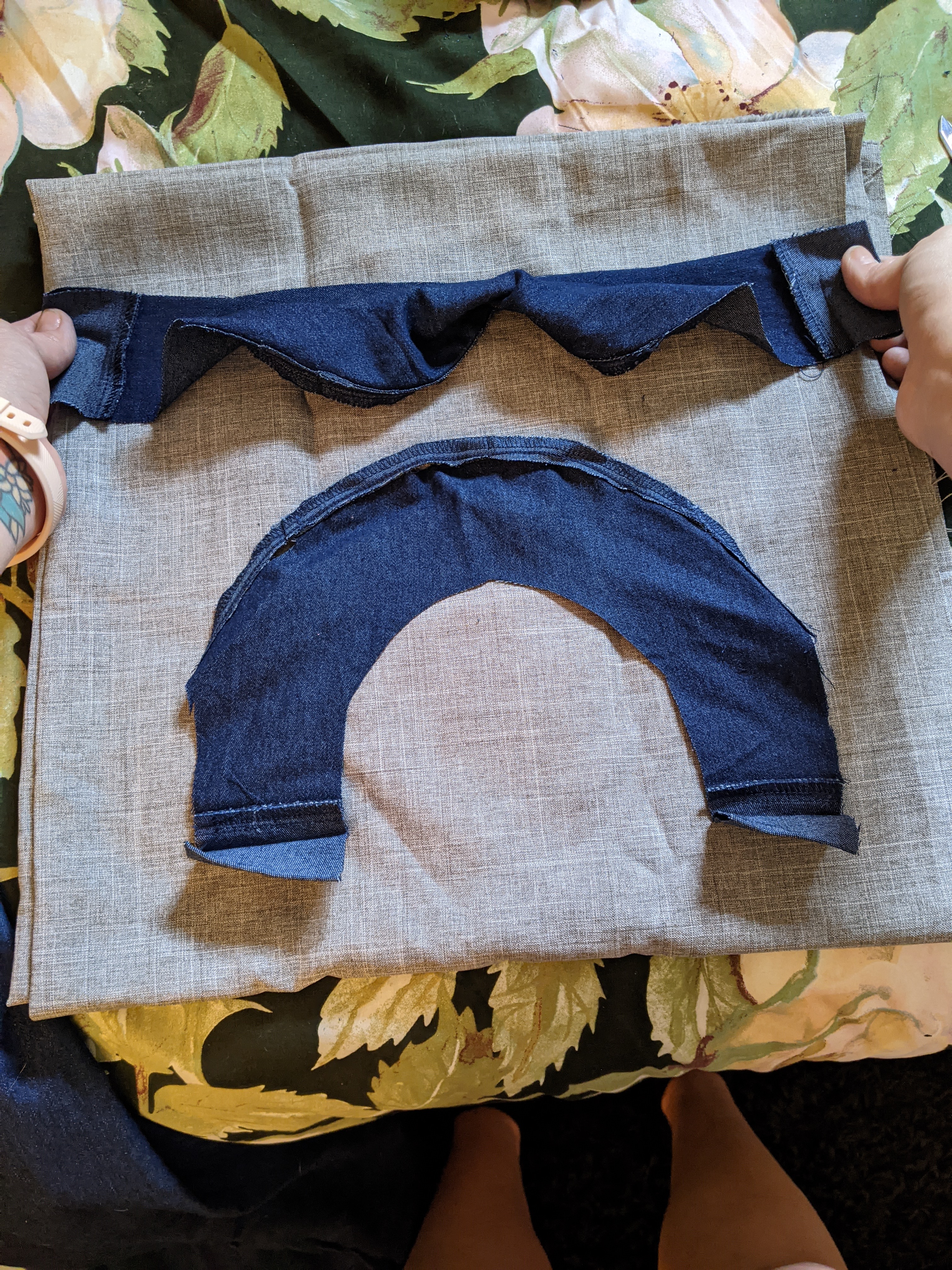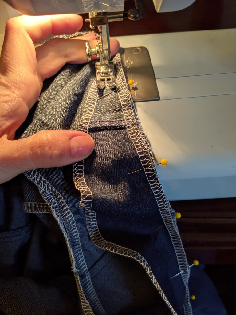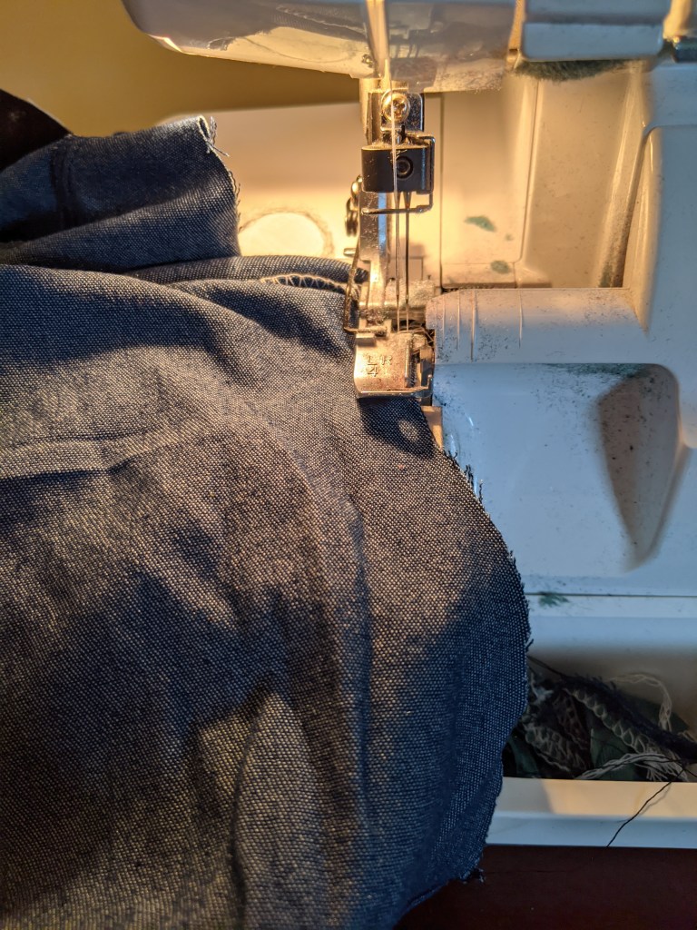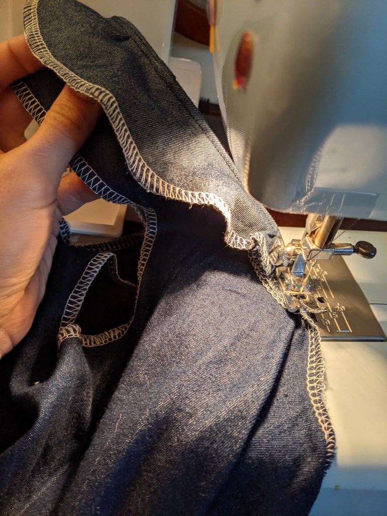 Once the armscye was sealed, I flipped the facing to the inside of the overalls, and serged it. ***I didn’t serge it before hand, because I wasn’t sure how thick I wanted the facing to be until it was already in.