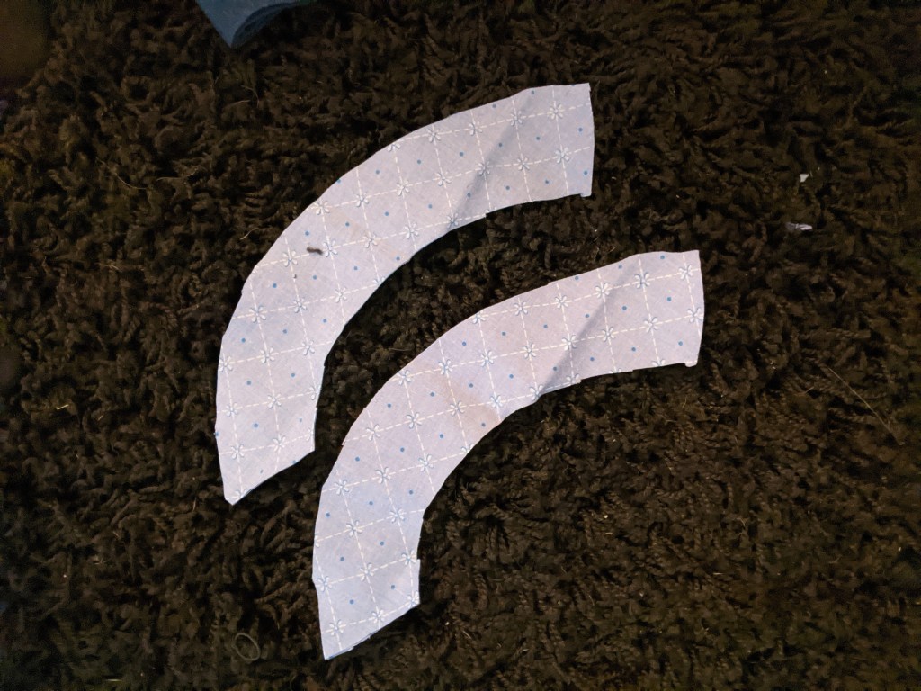 The last step is to make a facing for the armscye seams. I laid the overalls flat onto some doubled over scrap fabric, marked it, and cut. In total you should have 4 pieces, 2 for each arm.