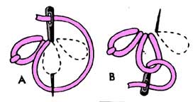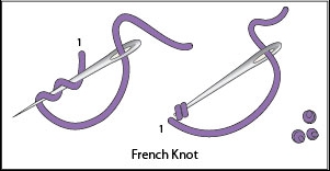 Having done one and feeling accomplished, I decided to go a little bolder on the next one. I did a woven wheel stitch to make the flower, a chain stitch along the center, and a blanket stitch to close up the edges. Those look like these: