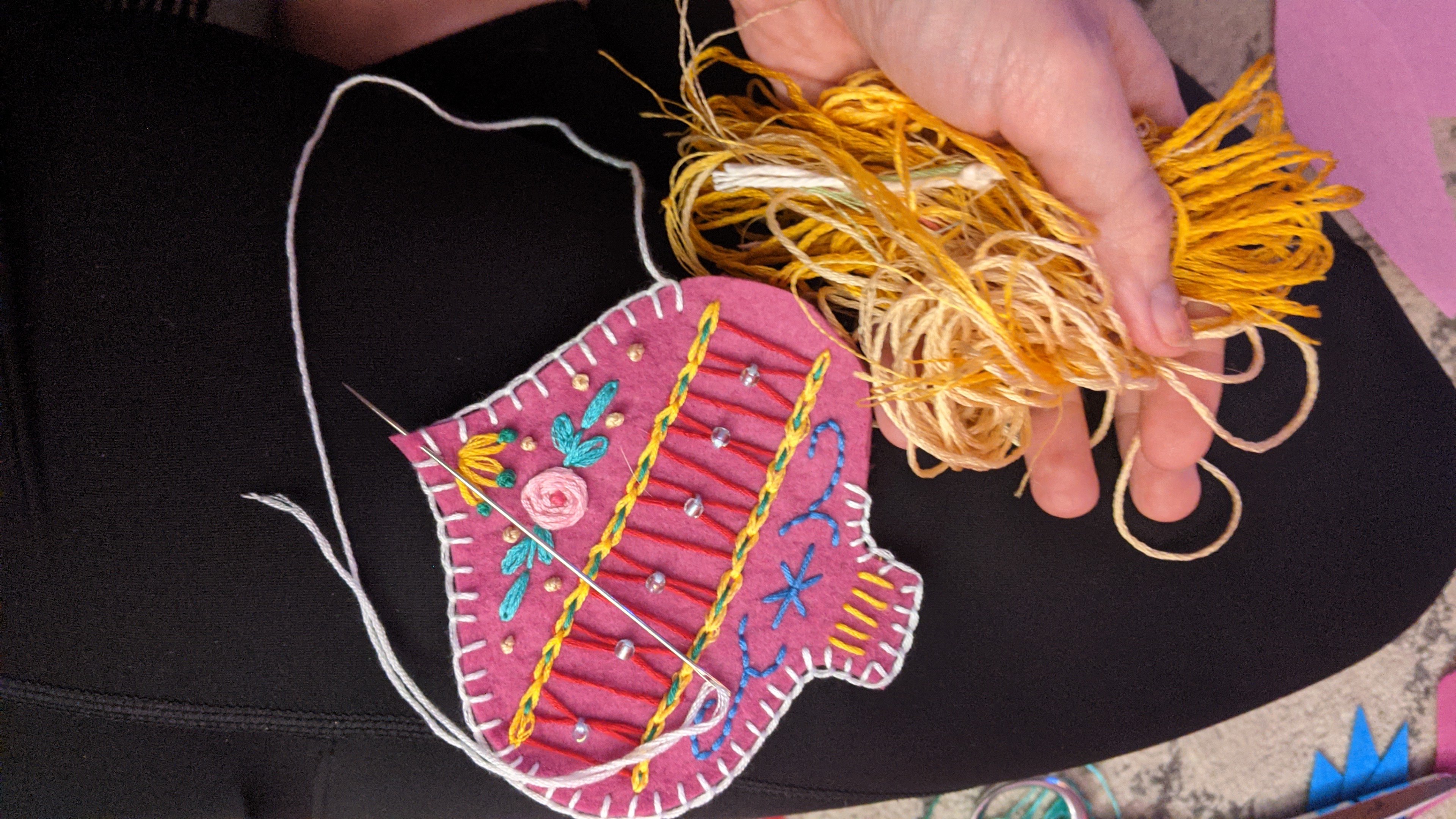 I agreed with myself that I would only have to embroider one side. As any crafter knows, you both love and loathe the process, because often times, we bite off more than we can chew. I wanted to keep this project as frustration-free as possible, since I have less time to craft these days. I’m forever making lesson plans for school, and then filming the lessons for everyone that doesn’t show up to the live class, essentially, doubling my workload. You can see some of those lessons here: https://www.youtube.com/channel/UCnxXIwN9FkYI_c_3FgguKOw