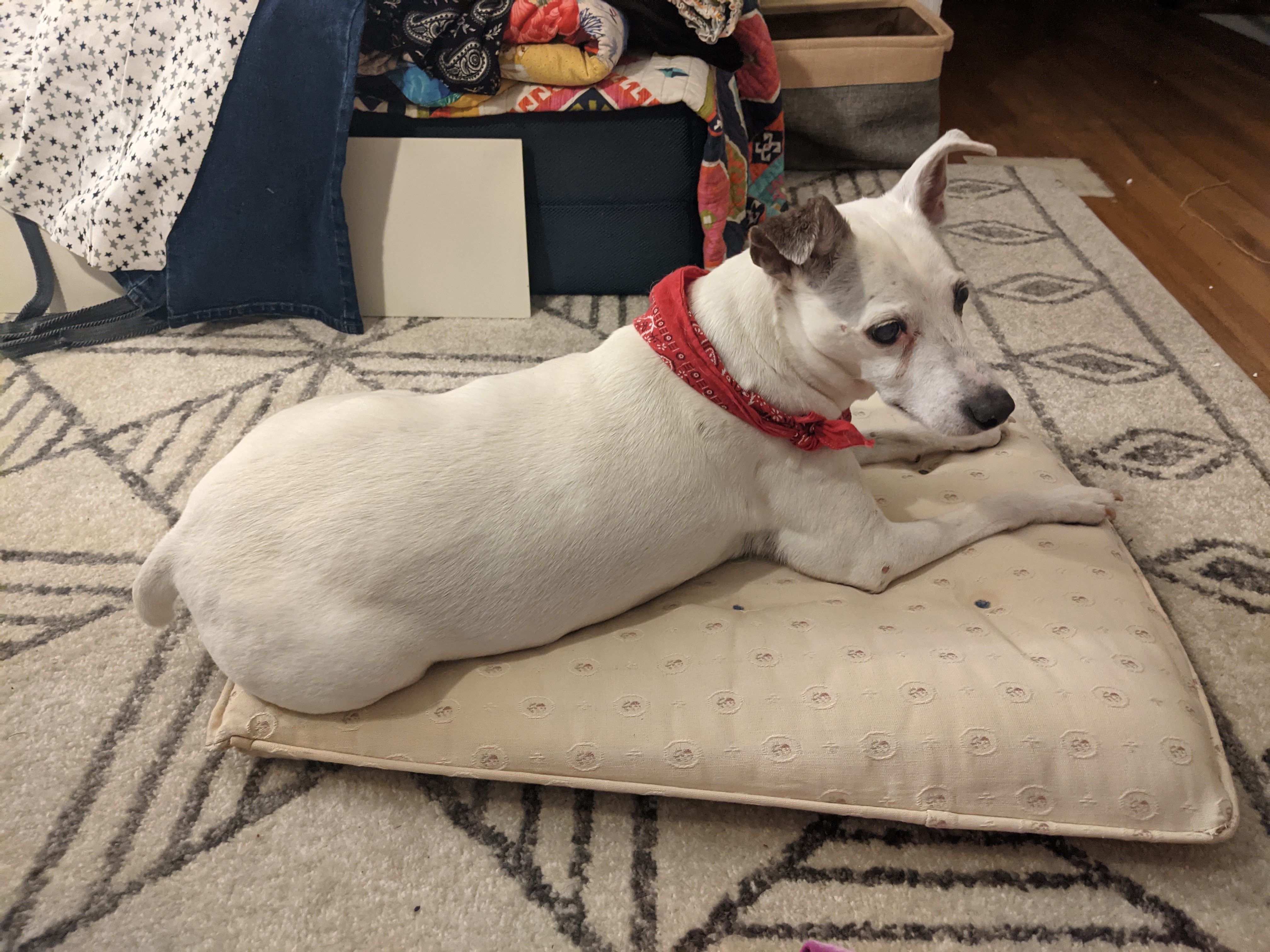 One of the things that Jen is excited about is rocking this new being in the family gliding chair. (I’d call it heirloom, but it’s only from the 80’s). I did not see it as a unified chair, so I only have the cushions to show you.