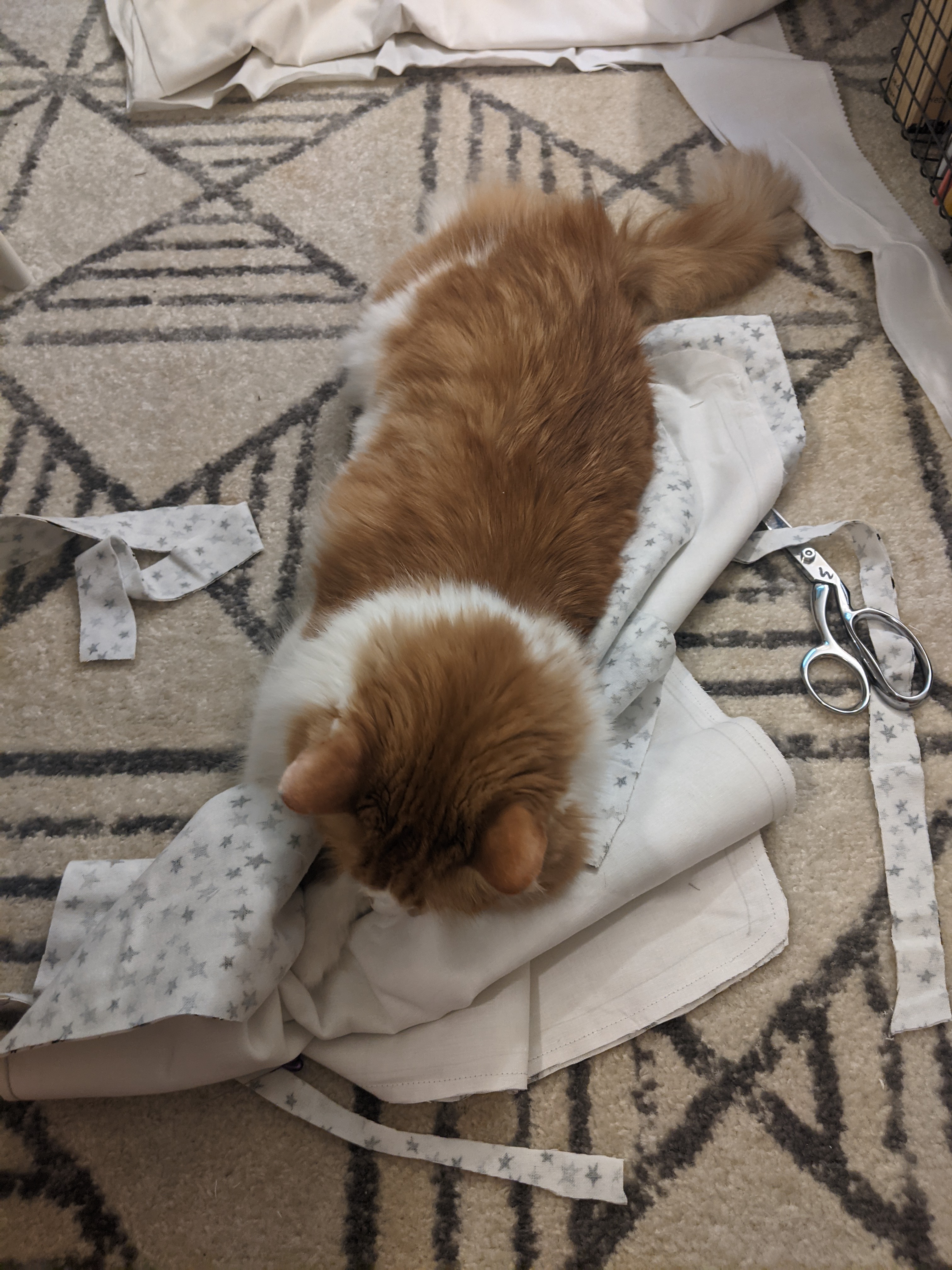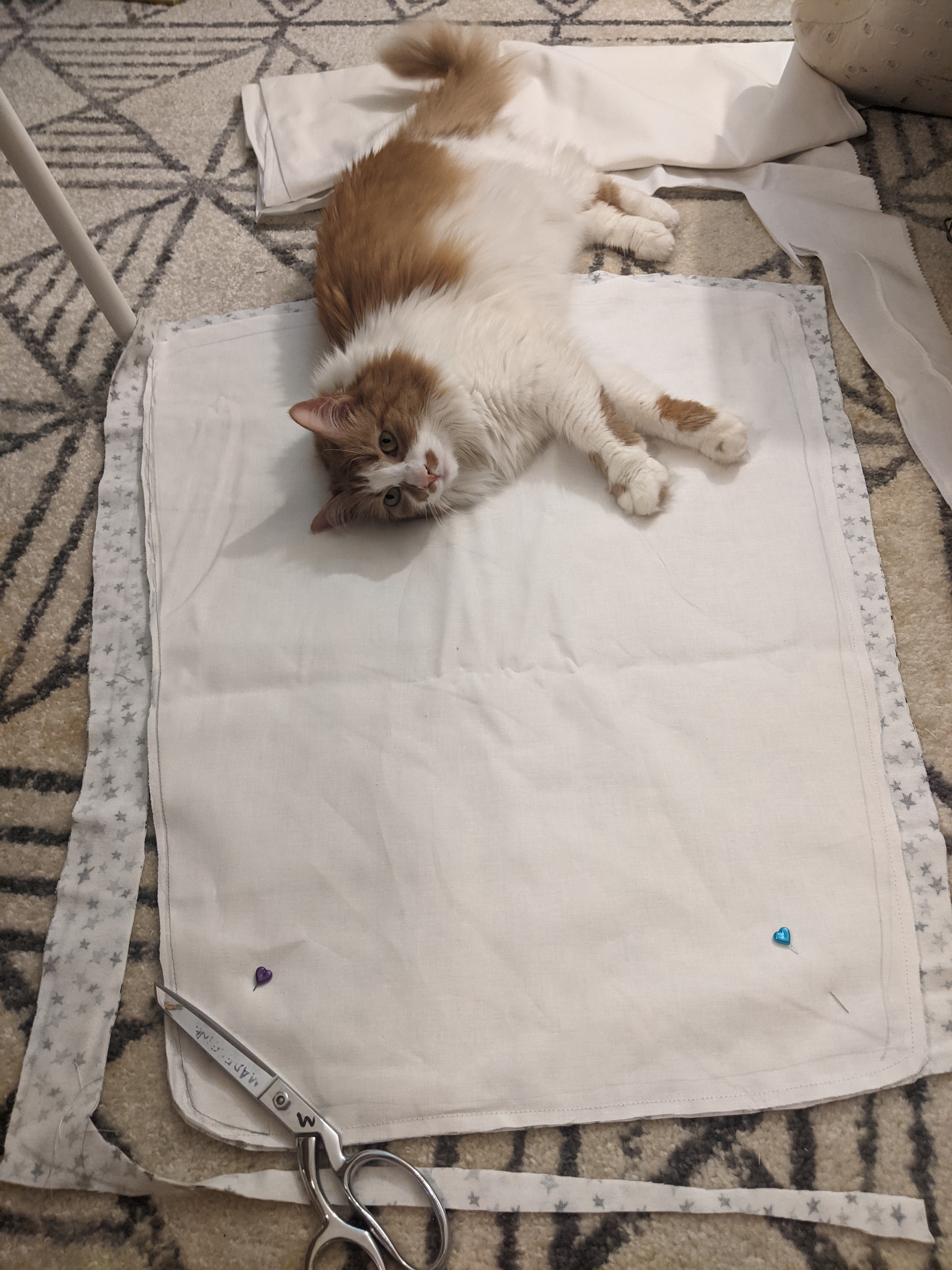So now, with my project manager keeping an eye on me, I laid the old seat over the liner fabric, and began hesitantly to cut it out. Amelia checked for quality control every step of the way.