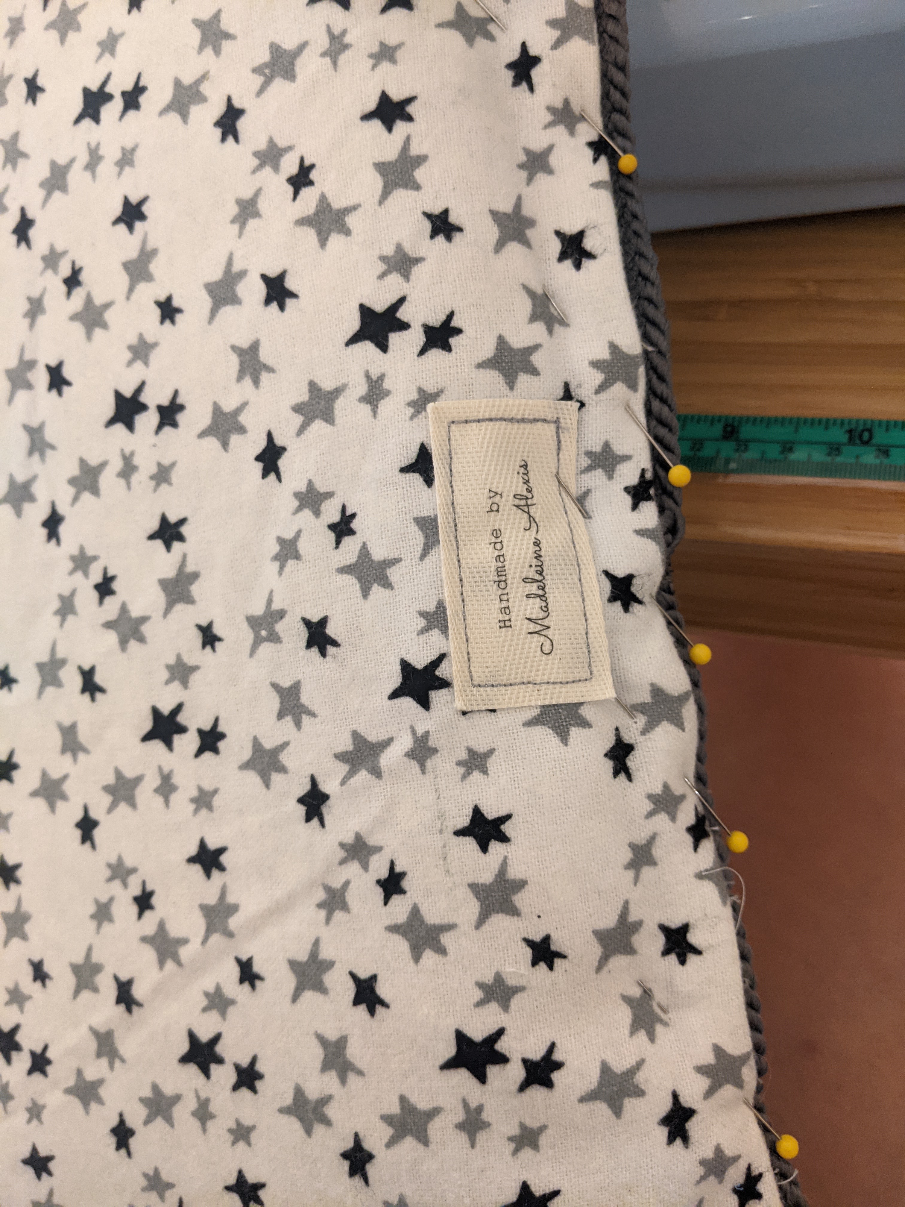 After changing the needle (twice) the zipper was finally, if not reluctantly, installed and in working order. All the seams were turned right side out, and as a final touch, I added my Me-Made tag.